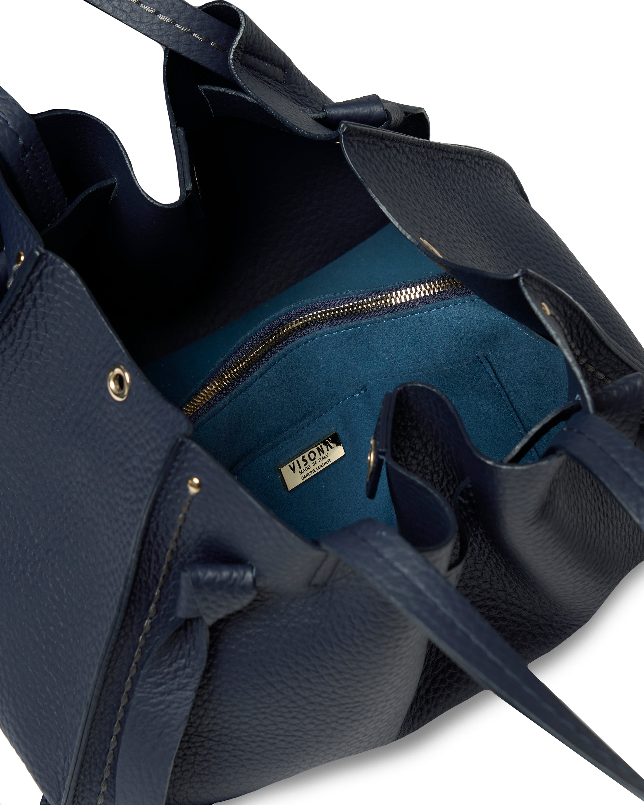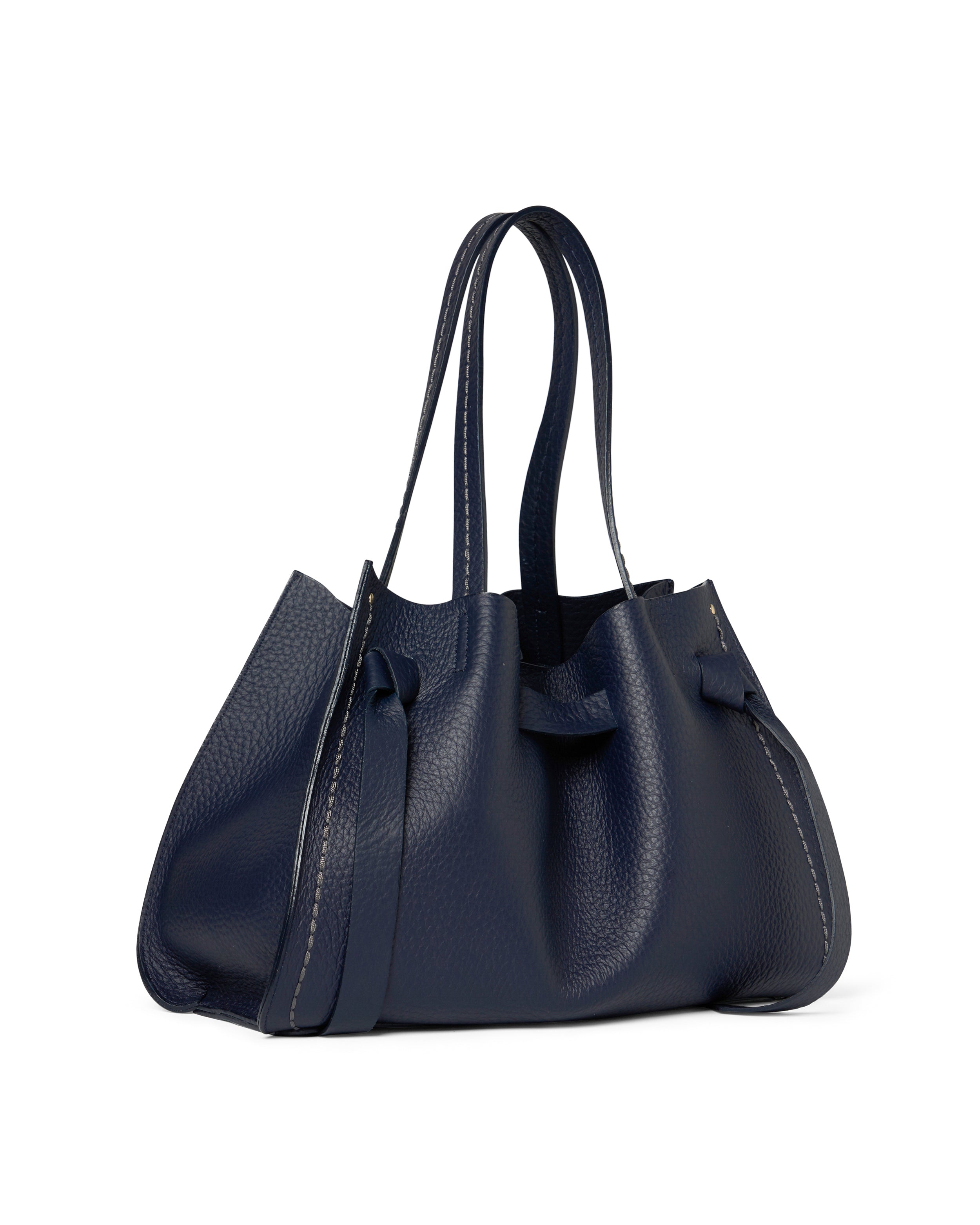 • Fiocchetti in pelle che permettono di regolare l'ampiezza della borsa