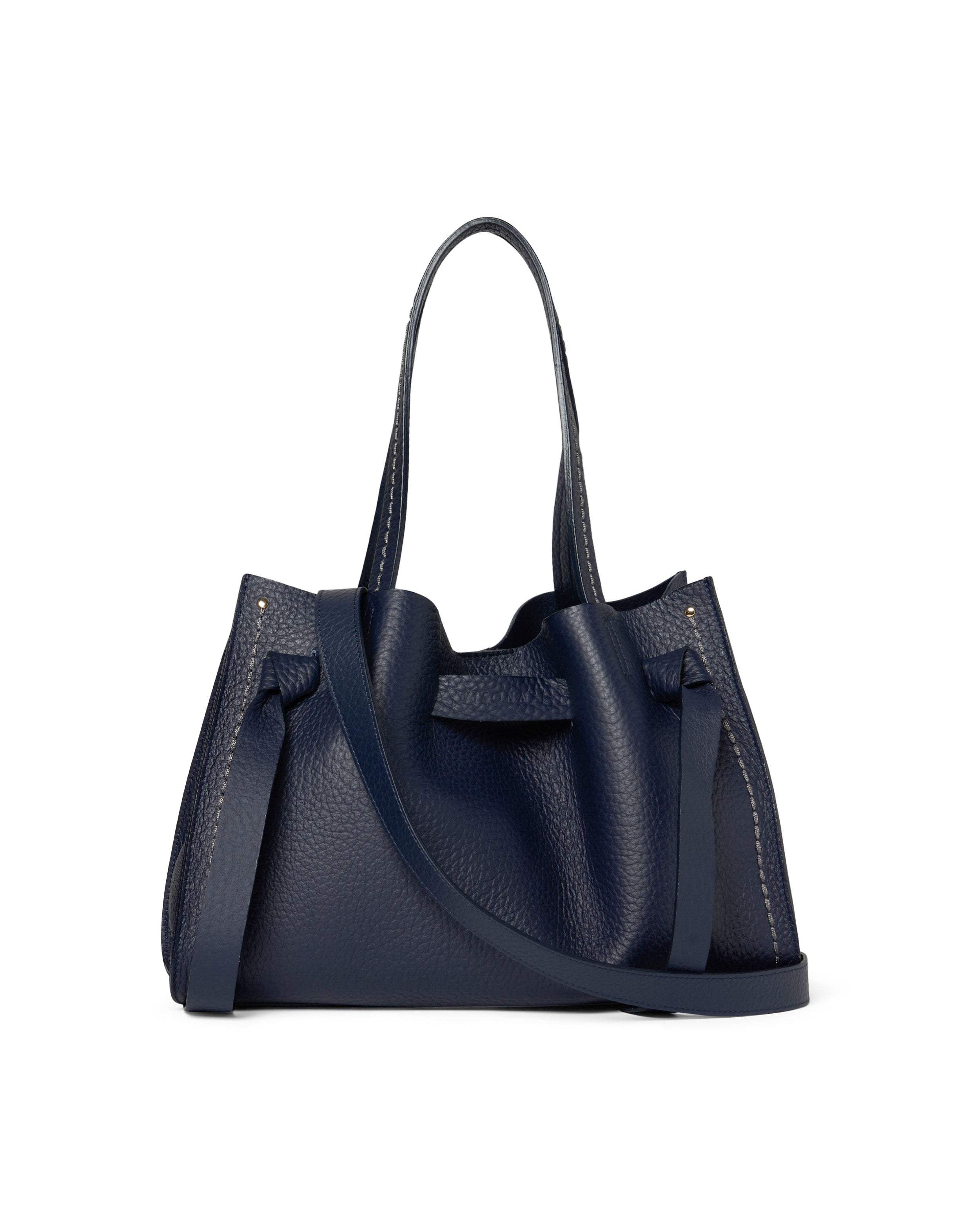 Scopri la linea Vittoria, realizzata in morbida pelle pieno fiore. Questa borsa può essere portata a mano o a spalla grazie alla tracolla rimovibile. Le cuciture distintive aggiungono un tocco di eleganza. 100% Made in Italy.