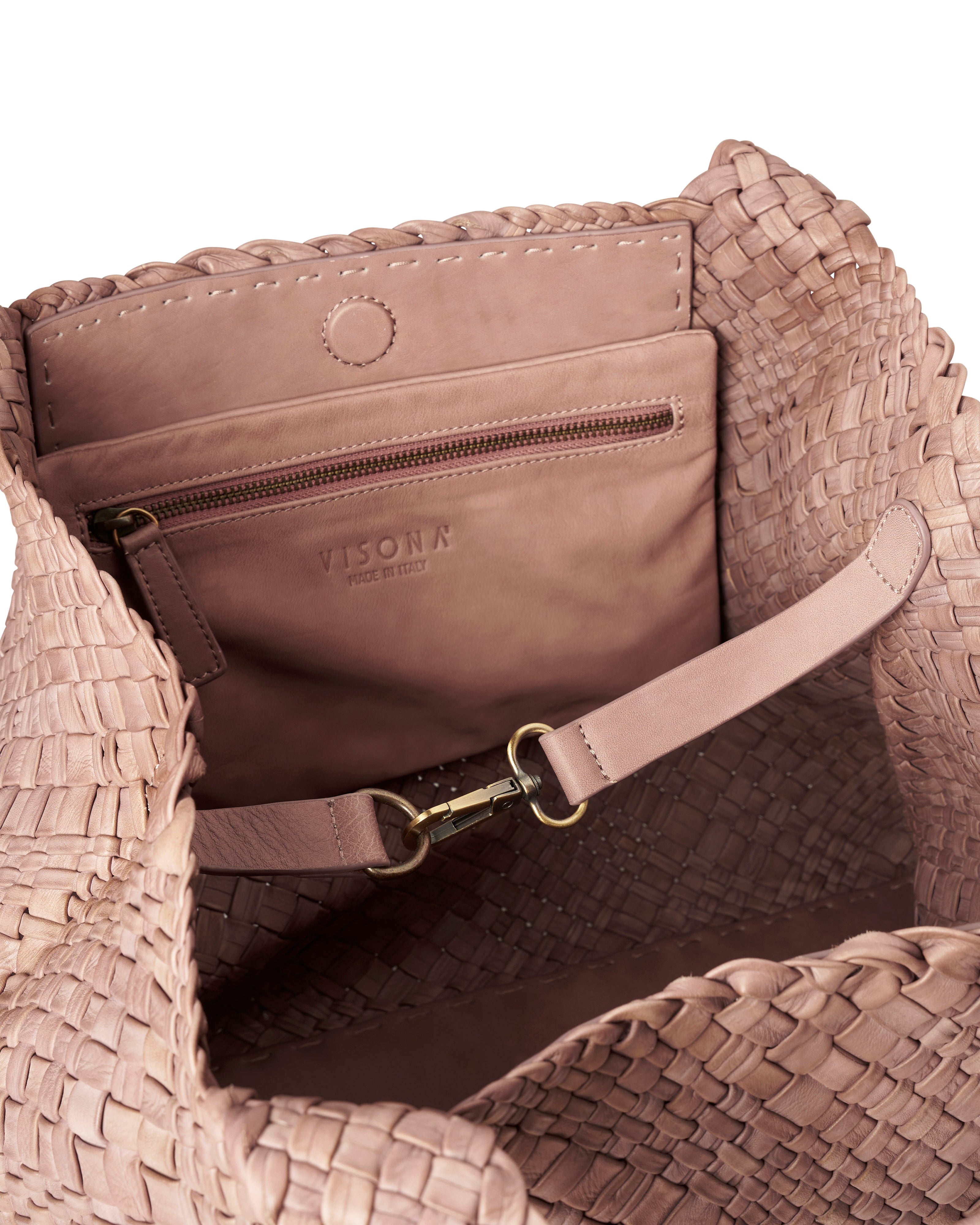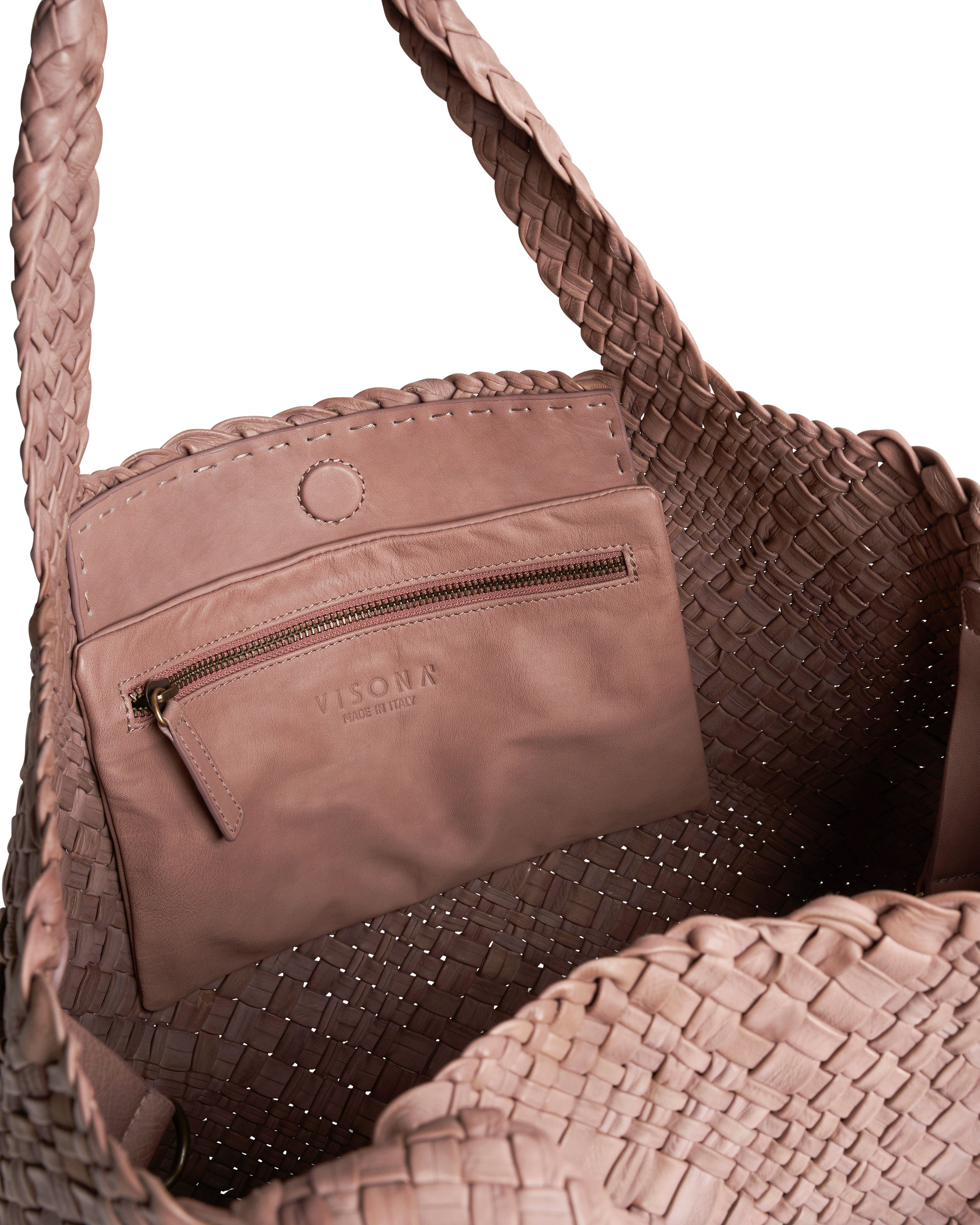 This handbag has been woven by hand by highly specialized artisans. This leather is natural and vegetal tanned: small fading and small differences in color are unique feature of this natural leather