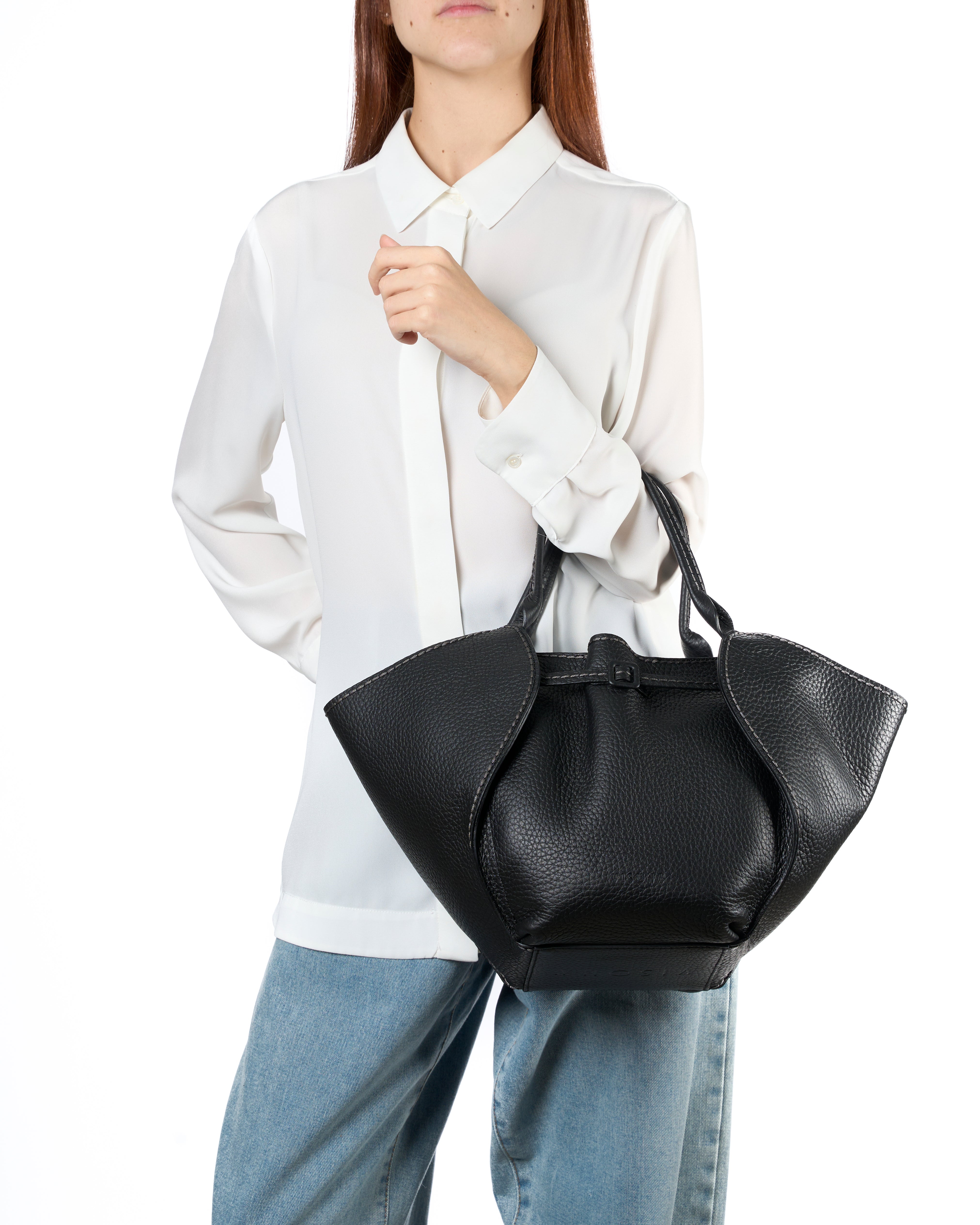 Scopri la linea Vita. Questa borsa può essere portata a mano o a spalla grazie alla tracolla rimovibile. Le cuciture distintive aggiungono un tocco di eleganza. 100% Made in Italy.