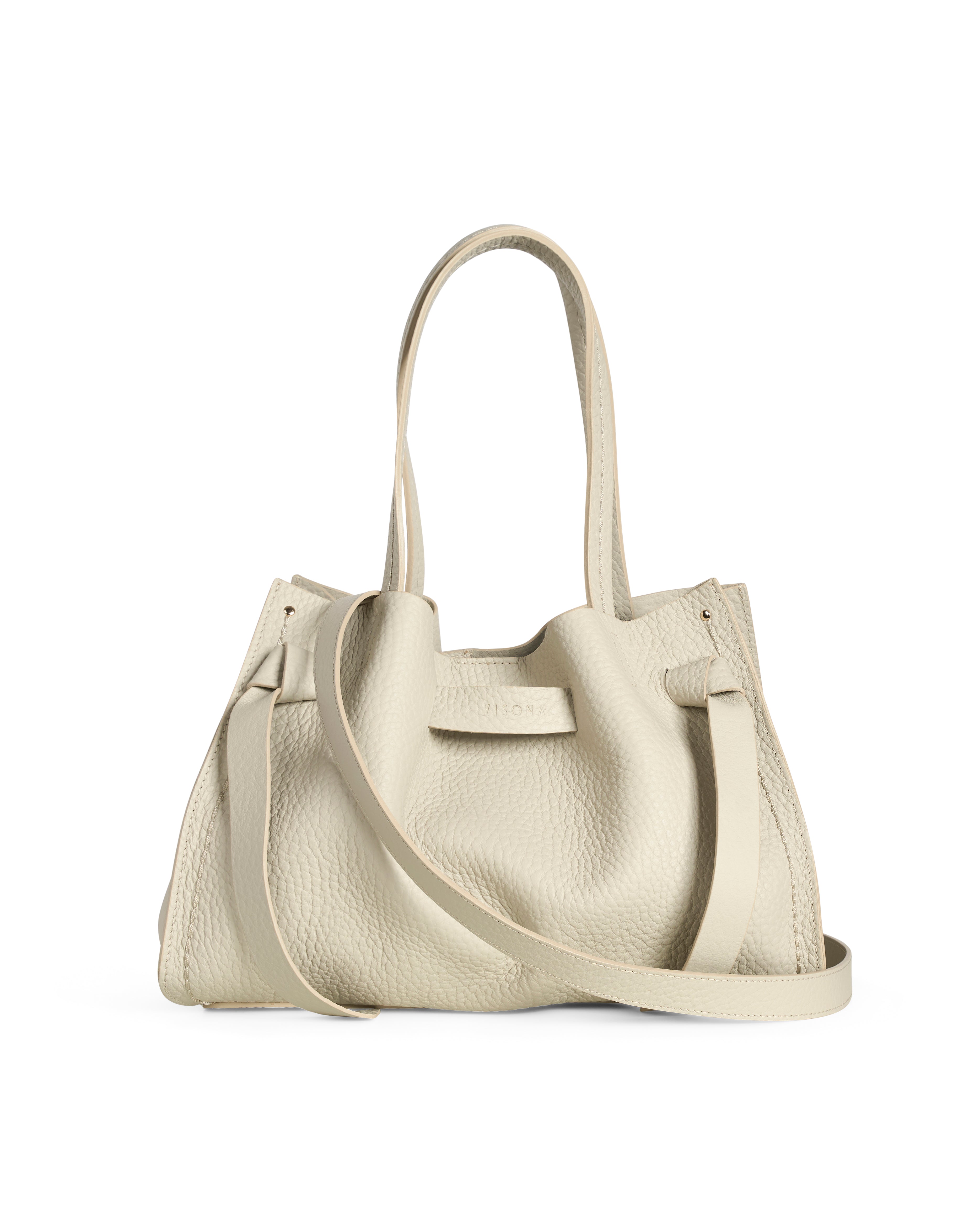 Scopri la linea Vittoria, realizzata in morbida pelle pieno fiore. Questa borsa può essere portata a mano o a spalla grazie alla tracolla rimovibile. Le cuciture distintive aggiungono un tocco di eleganza. 100% Made in Italy.